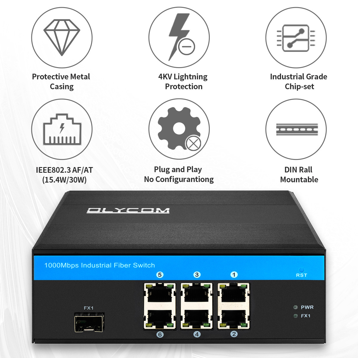 এই 6 পোর্ট din POE ইথারনেট সুইচ unmanaged এছাড়াও নিচে বৈশিষ্ট্য